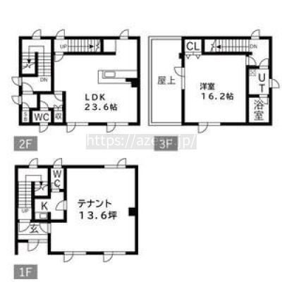 所在階/建物の階建 1階 / 地上3階建 主要採光面 構造 鉄筋コンクリート(RC)造 間取り 2階:LDK23.6帖 / 3階:洋室16.2帖 契約期間 定期借家(10年間) 権利金 住宅保険 出店推奨業種 美容・健康・介護、教育・スクール、事務所 出店不可業種 接道状況 角地 引渡し 相談(1階空き 2・3階は2月中旬 空き予定。) 管理人 取引態様 仲介 物件No 設備・特徴 - 給排水設備