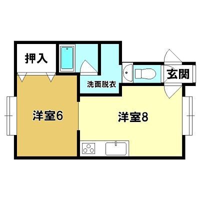 1DK(38.6m²)└ DK8帖 洋室6帖 / 8×6