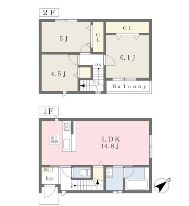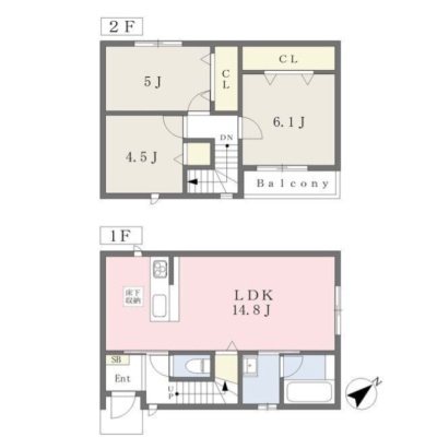 3LDK(73.9m²)└ LDK14.8帖 洋室6.1帖 洋室5帖 洋室4.5帖