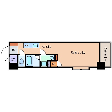 1K(26.37m²)└ 5階:洋室8.3帖