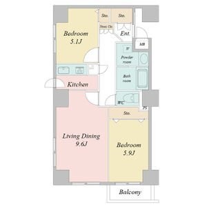2LDK(54.62m²)└ LDK9.6帖 洋室5.9帖 洋室5.1帖