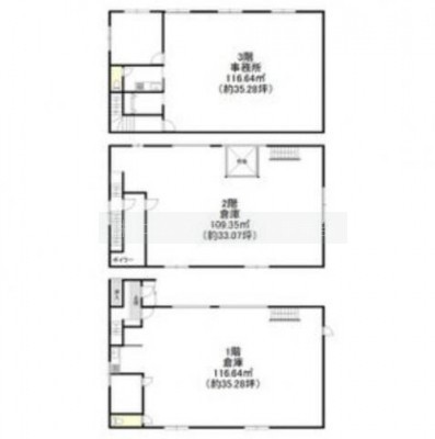 ここに注目!【米里エリア札幌インター付近】倉庫付事務所です。1階倉庫35.28坪2階倉庫33.07坪 3階事務所35.28坪 駐車場6台以上可能です。※同建物の向かって左側の倉庫および倉庫の手前の敷地は含まれません。1・2階倉庫