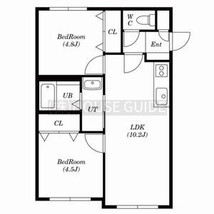 2LDK(45.36m²)└ 1階:LDK10.2帖 洋室4.8帖 洋室4.5帖