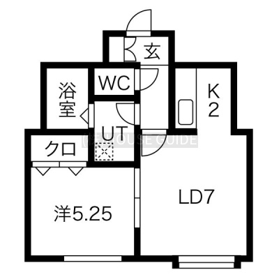 1LDK(34.48m²)└ 2階:LD7帖 K2帖 洋室5.25帖