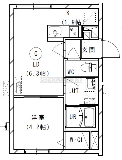 1LDK(30.36m²)└ LD6.33帖 K1.9帖 洋室4.2帖