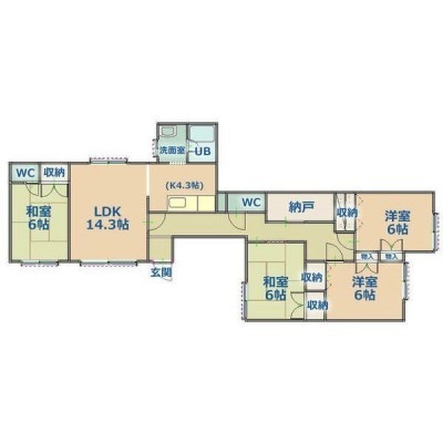 4LDK(95m²)└ LDK14.3帖 洋室6帖 洋室6帖 和室6帖 和室6帖