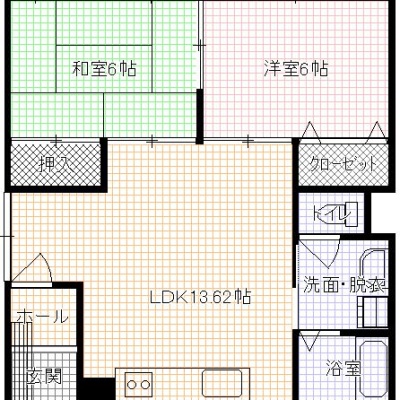 2LDK(61.02m²)└ LDK13.62帖 和室6帖 洋室6帖