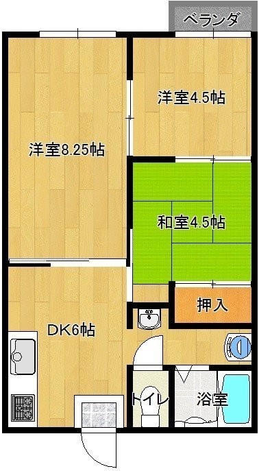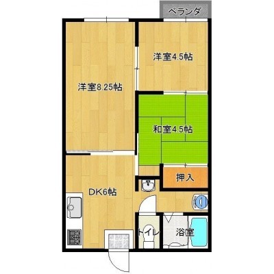 3DK(41.9m²)└ 洋室4.5帖 和室4.5帖 洋室8.25帖 DK6帖