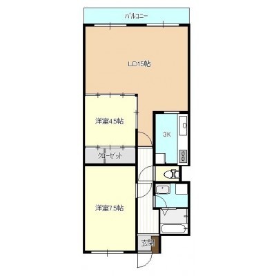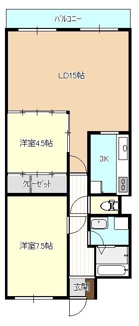 2LDK(66.72m²)└ 洋室4.5帖 LDK15帖 洋室7.5帖