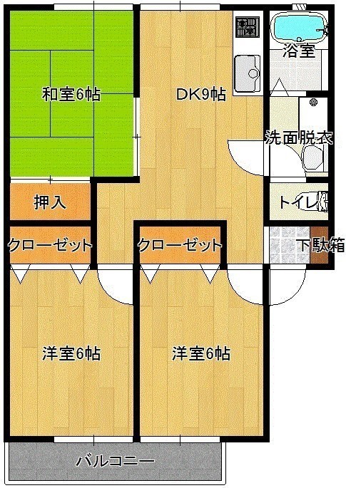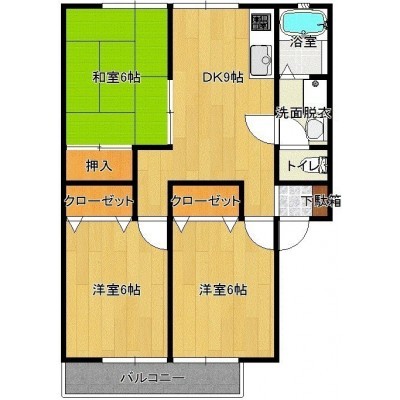 3DK(55.89m²)└ 洋室6帖 洋室6帖 洋室6帖 LDK9帖