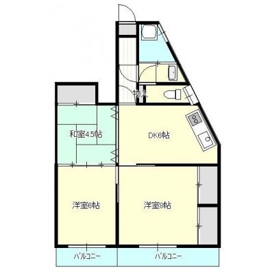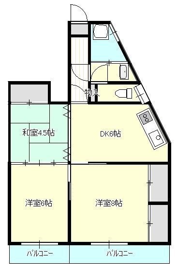3DK(54.6m²)└ DK6帖 和室4.5帖 洋室8帖 洋室6帖