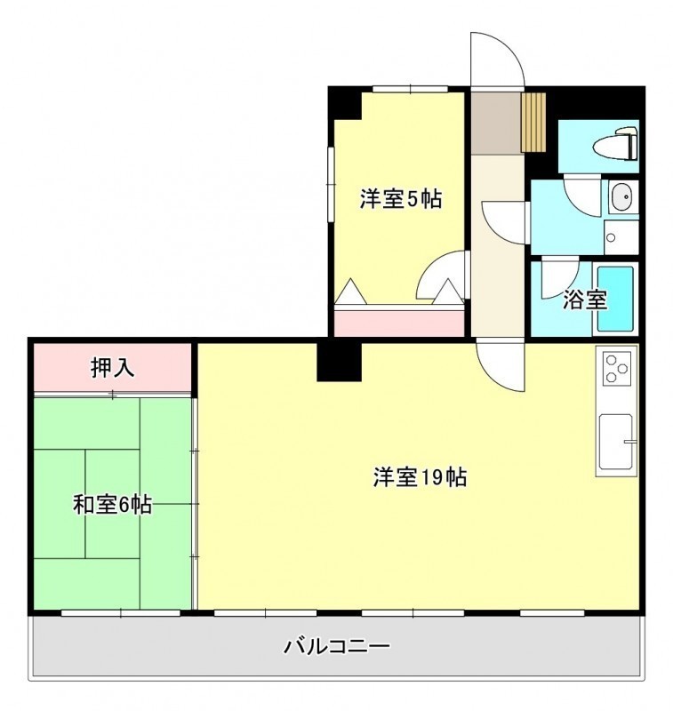 2LDK(66.34m²)└ LDK19帖 洋室5帖 和室6帖