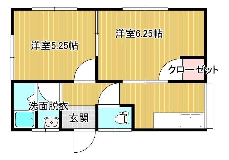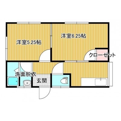 2K(33.06m²)└ 洋室6.25帖 洋室5.25帖 K