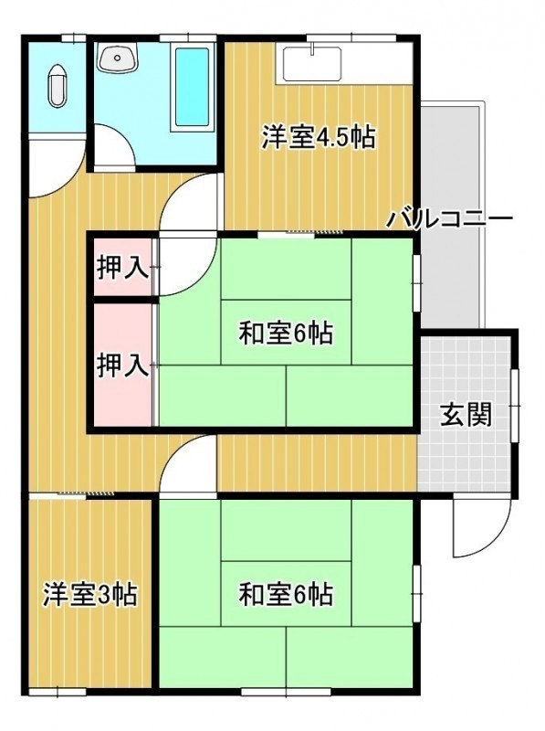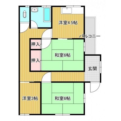 3DK(51.2m²)└ 2階:洋室3帖 洋室6帖 和室6帖 DK4.5帖