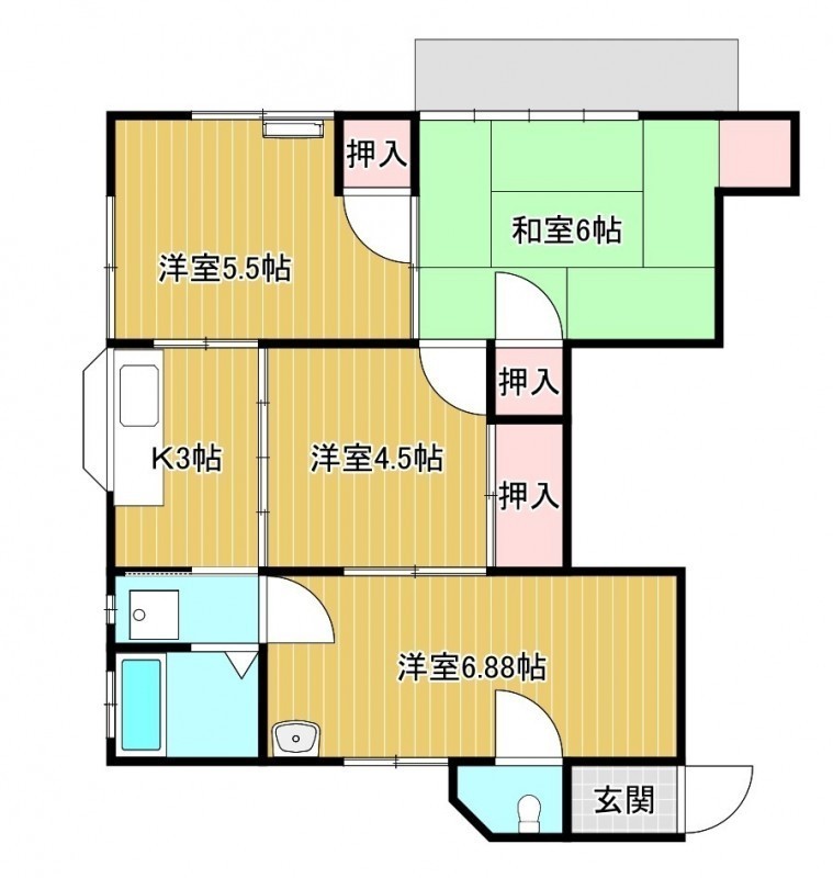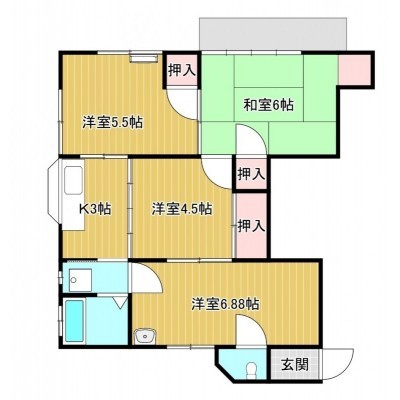 4K(32.31m²)└ K3帖 洋室6.88帖 洋室4.5帖 洋室5.5帖 和室6帖
