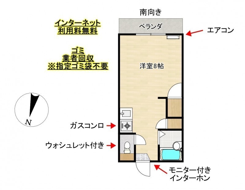 ワンルーム(24m²)└ 洋室8帖
