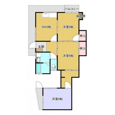 2SDK(40.5m²)└ DK6帖 洋室6帖 洋室6帖 S6帖