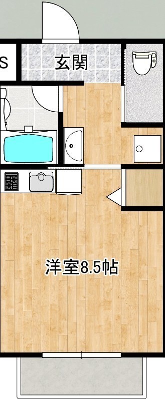 ワンルーム(24.43m²)└ 1階:洋室8.5帖