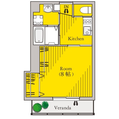 1K(25.92m²)└ 1階:洋室8帖 K2帖