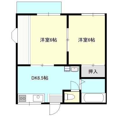 2DK(36m²)└ 2階:和室6帖 和室6帖 DK6帖