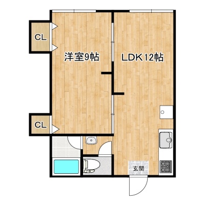 1LDK(40m²)└ 1階:LDK12帖 洋室9帖