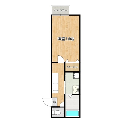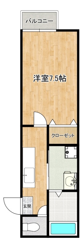 1K(24.84m²)└ 洋室7.5帖 K2帖