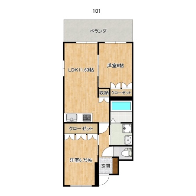 2LDK(55.94m²)└ 1階:洋室6帖 洋室6.75帖 / その他:LDK11.63帖