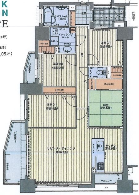 4LDK(99.98m²)└ LDK21.7帖 洋室6.5帖 洋室5帖 洋室5.6帖 和室5.5帖