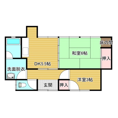 2DK(39.75m²)└ DK5.5帖 和室6帖 洋室3帖