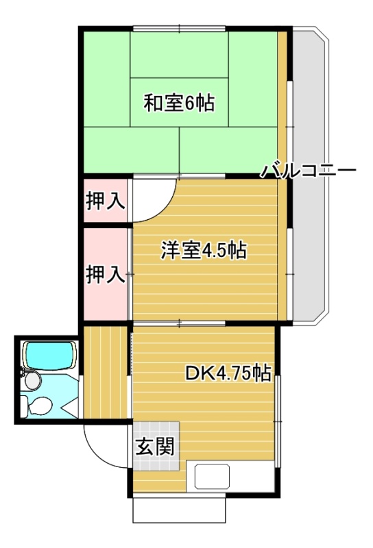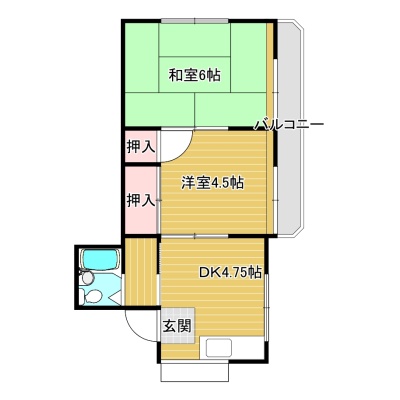 2DK(33.5m²)└ 2階:洋室4.75帖 洋室4.5帖 和室6帖