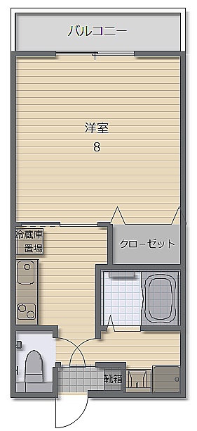 1K(26.25m²)└ 洋室8帖