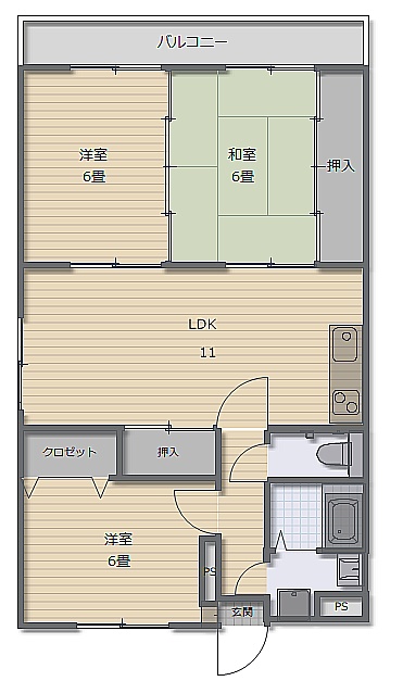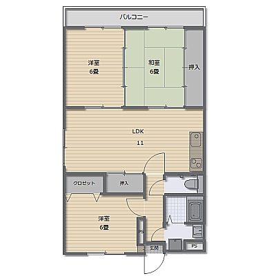 3LDK(69.32m²)└ 洋室6帖 洋室6帖 和室6帖 LDK11帖