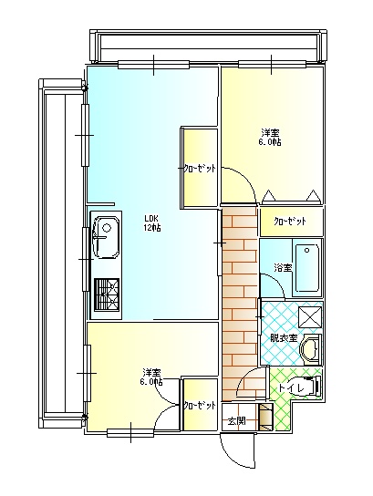 2LDK(65.36m²)└ 3階:LDK12帖 洋室6帖 洋室6帖