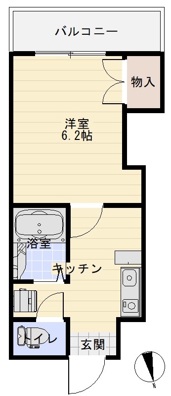 1K(22.63m²)└ 洋室6帖 K3帖