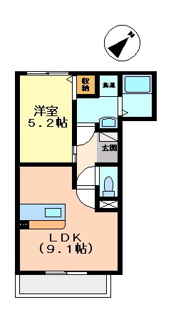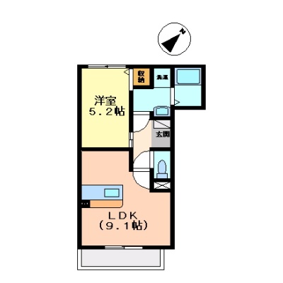 1LDK(35.37m²)└ 洋室5.2帖 LDK9.1帖