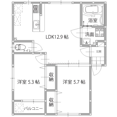 2LDK(51.8m²)└ LDK12.9帖 洋室5.3帖 洋室5.7帖