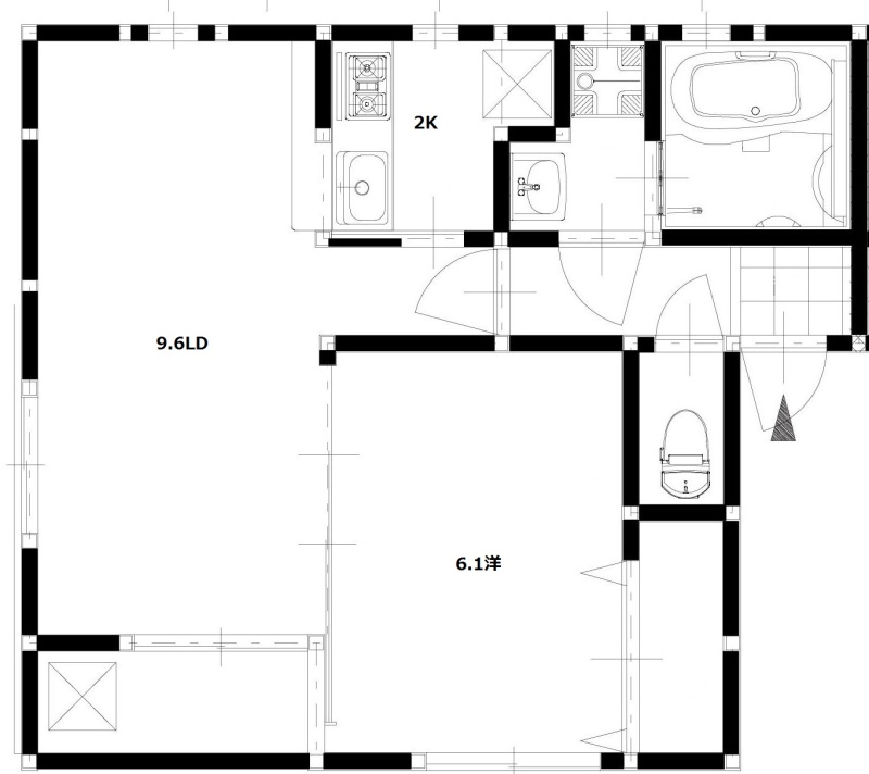 2K(40.58m²)└ 洋室6.1帖 LD9.6帖 K2帖