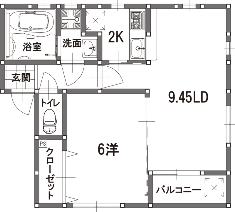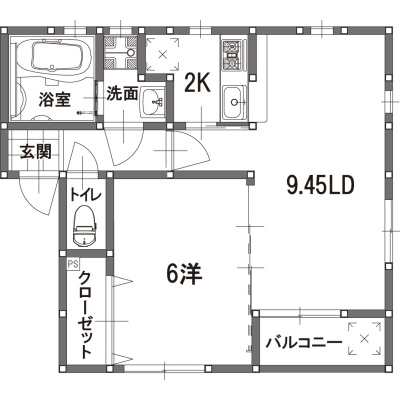 2K(40.52m²)└ 洋室6帖 LD9.45帖 K2帖