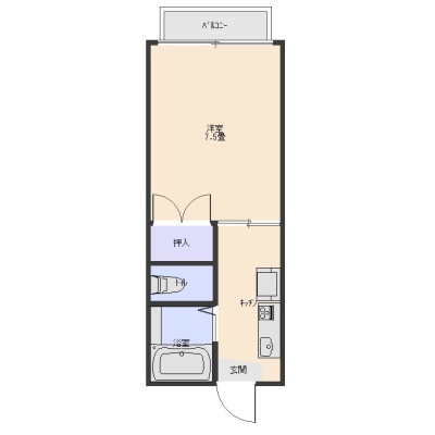 1K(25.75m²)└ 洋室7.5帖 K3帖