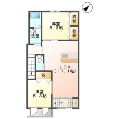2LDK(59.64m²)└ 洋室6.2帖 洋室5.3帖 LDK11.1帖