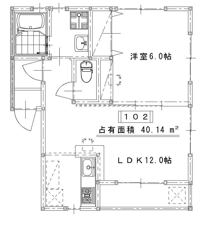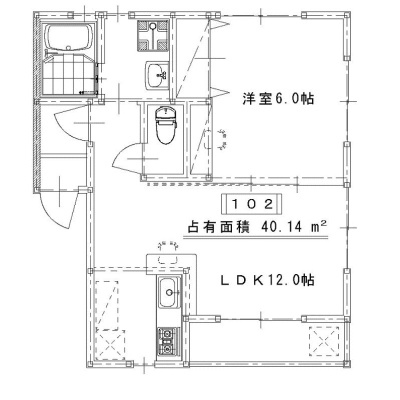 1LDK(40.14m²)└ 洋室6帖 LDK12.5帖