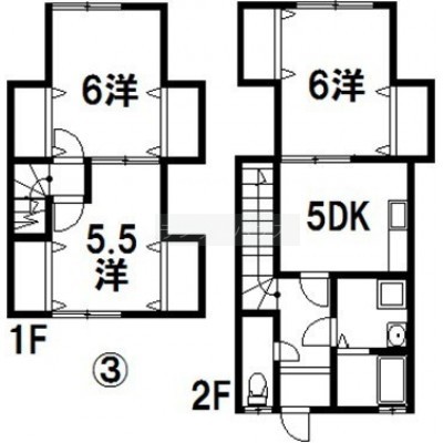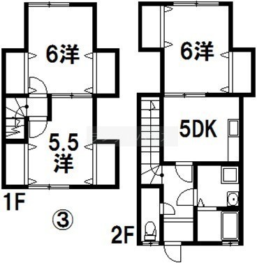 3DK└ 1階:洋室6帖 / 2階:DK5帖 / その他:洋室6帖 洋室5.5帖