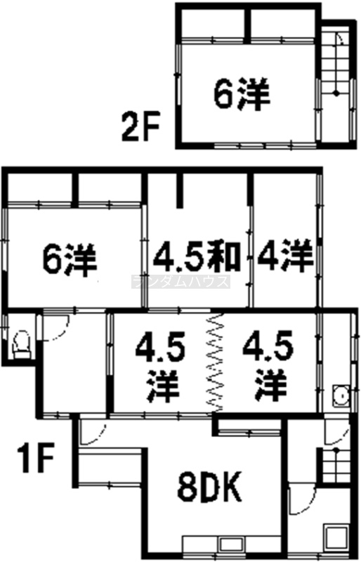 5DK└ 1階:DK8帖 洋室4.5帖 洋室4.5帖 和室4.5帖 その他4帖 洋室6帖 / 2階:洋室6帖