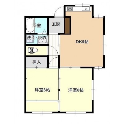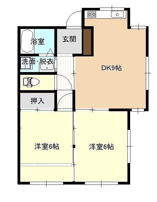 2DK└ 洋室6帖 洋室6帖 DK9帖