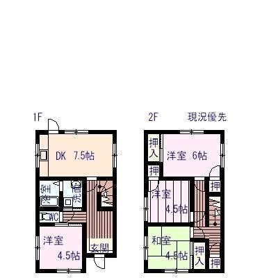 4DK(73.68m²)└ 洋室4.5帖 和室4.5帖 洋室4.5帖 洋室6帖 DK7.5帖