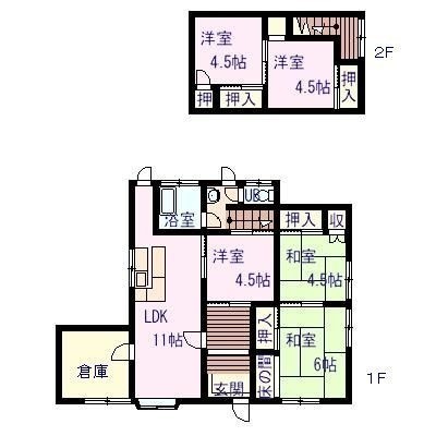 5LDK(100.48m²)└ 和室4.5帖 和室6帖 洋室4.5帖 LDK11帖 洋室4.5帖 洋室4.5帖