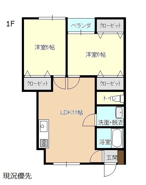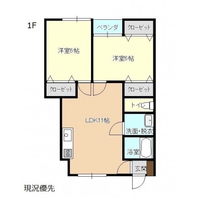 2LDK(53.08m²)└ 洋室6帖 洋室6帖 LDK11帖