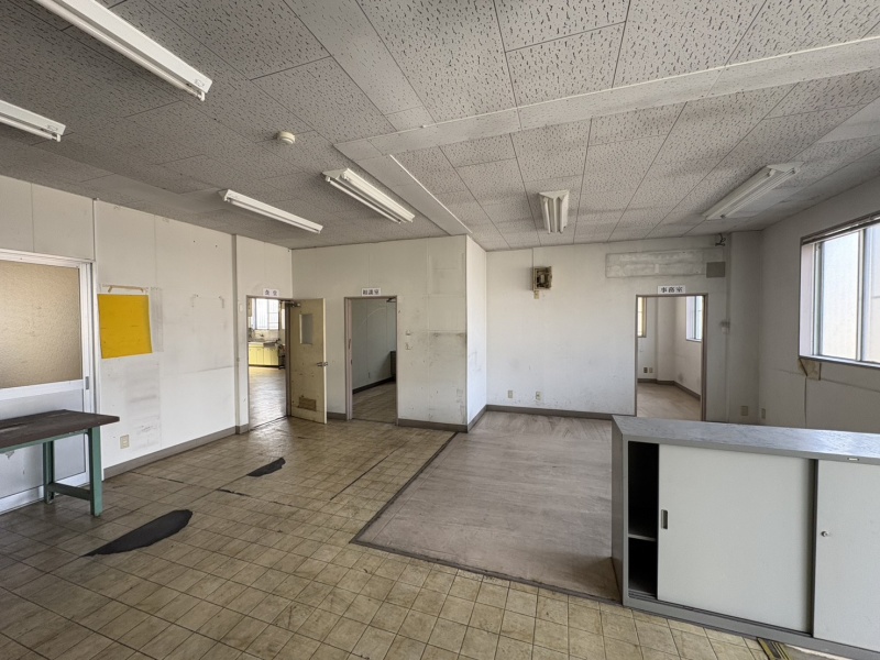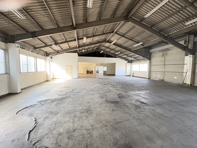 ここに注目!【佐世保市鹿町町】元配送拠点の大型倉庫(140坪超)が登場!広大な駐車スペース完備 佐世保市鹿町町深江の利便性の高いエリアに、140坪を超えるゆとりの広さを誇る鉄骨造平屋倉庫が登場しました。 以前は配送業者の拠点として活用されていたため、大型車両の出入りや荷役作業のしやすさは折り紙付き。即戦力の物流拠点として、配送・物流業はもちろん、加工工場や大型資材の保管など、幅広いビジネスニーズにお応えします。 【本物件のポイント】 140坪超の開放的なワンフロア: 鉄骨造スレート平屋の使い勝手の良い構造。 事務所機能を完備: 庫内には事務所や休憩室に最適な3部屋とトイレを完備。バックオフィス機能も同建物内に集約可能です。 10台以上の大型駐車スペース: 広々とした敷地で、従業員や来客用駐車場の確保もスムーズです。 周辺にはコンビニエンスストアやドラッグストアが点在しており、従業員様の作業環境としても非常に恵まれた立地です。広い倉庫をお探しの事業者様、ぜひこの機会にご検討ください。