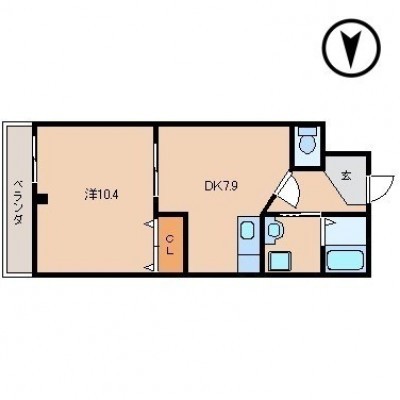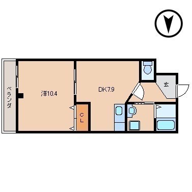1DK(43.25m²)└ 4階:DK7.9帖 洋室10.4帖