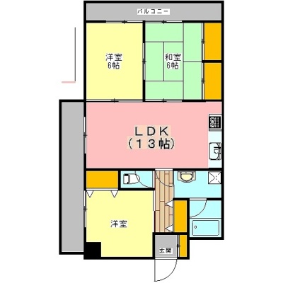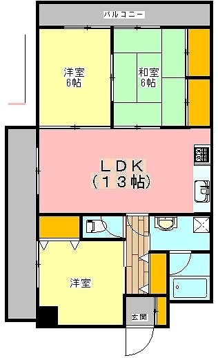 3LDK(65m²)└ 6階:LDK13帖 洋室6帖 洋室6帖 和室6帖